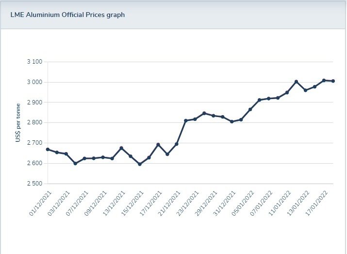 Ανεβαίνει η τιμή του σκραπ αλουμινίου. Το 2022, έως τις 18 Ιανουαρίου, η τιμή του αλουμινίου στα χρηματιστήρια μετάλλων αυξήθηκε. Τις πρώτες μέρες του Ιανουαρίου, η τιμή του αλουμινίου ήταν περίπου 2.800 δολάρια ανά τόνο και στις 18 Ιανουαρίου η τιμή του αλουμινίου έφτασε τα 3.000 δολάρια ανά τόνο. Μπορεί να λεχθεί ότι φέτος, σε 3 εβδομάδες η τιμή του αλουμινίου έχει αυξηθεί κατά περίπου 7-8%. Κατά τη διάρκεια αυτής της περιόδου, οι τιμές αγοράς του σκραπ αλουμινίου αυξήθηκαν ανάλογα σε διάφορες χώρες. Υπάρχουν πολλά είδη σκραπ αλουμινίου, επομένως οι τιμές των σκραπ αλουμινίου είναι διαφορετικές. Σύμφωνα με τον ιστότοπο scraprice.com, στις 19 Ιανουαρίου 2022, η υψηλότερη τιμή σκραπ αλουμινίου ήταν στην Πολωνία - έως και 2.600 ευρώ ανά κιλό. Αυτή ήταν η τιμή για το σκραπ ηλεκτρικού αλουμινίου. Το ηλεκτροτεχνικό αλουμίνιο περιέχει περισσότερο από 99% αλουμίνιο, επομένως η τιμή αυτού του σκραπ αλουμινίου είναι υψηλή